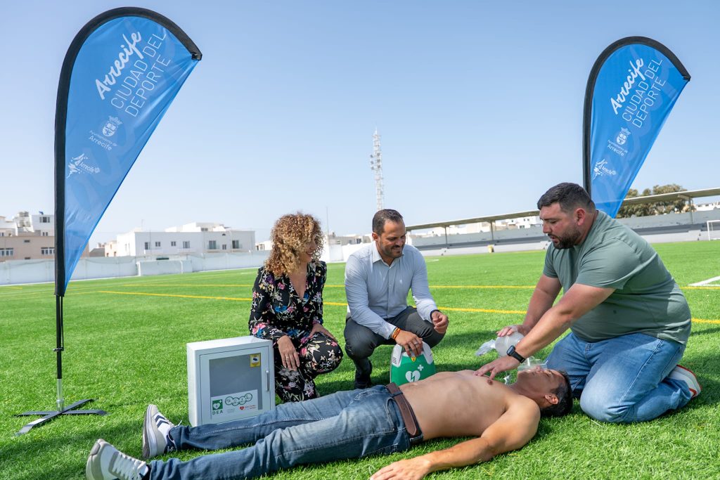 El alcalde de Arrecife, Yonathan de León, y la concejala de Deportes y portavoz del PP, Eli Merino, han detallado que disponer de estos nuevos equipamientos en todas las instalaciones deportivas permitirán salvar vidas humanas por la rápida respuesta. El alcalde detalló que desde ahora (concluidos los montajes en estos días) Arrecife dispondrá de una amplia red de DESA que reforzarán a los existentes en la playa de El Reducto, con bandera azul y un equipo humano de socorristas todos los días del año, más los desfibriladores móviles de los que están dotados equipos de la Policía Local y Protección Civil.