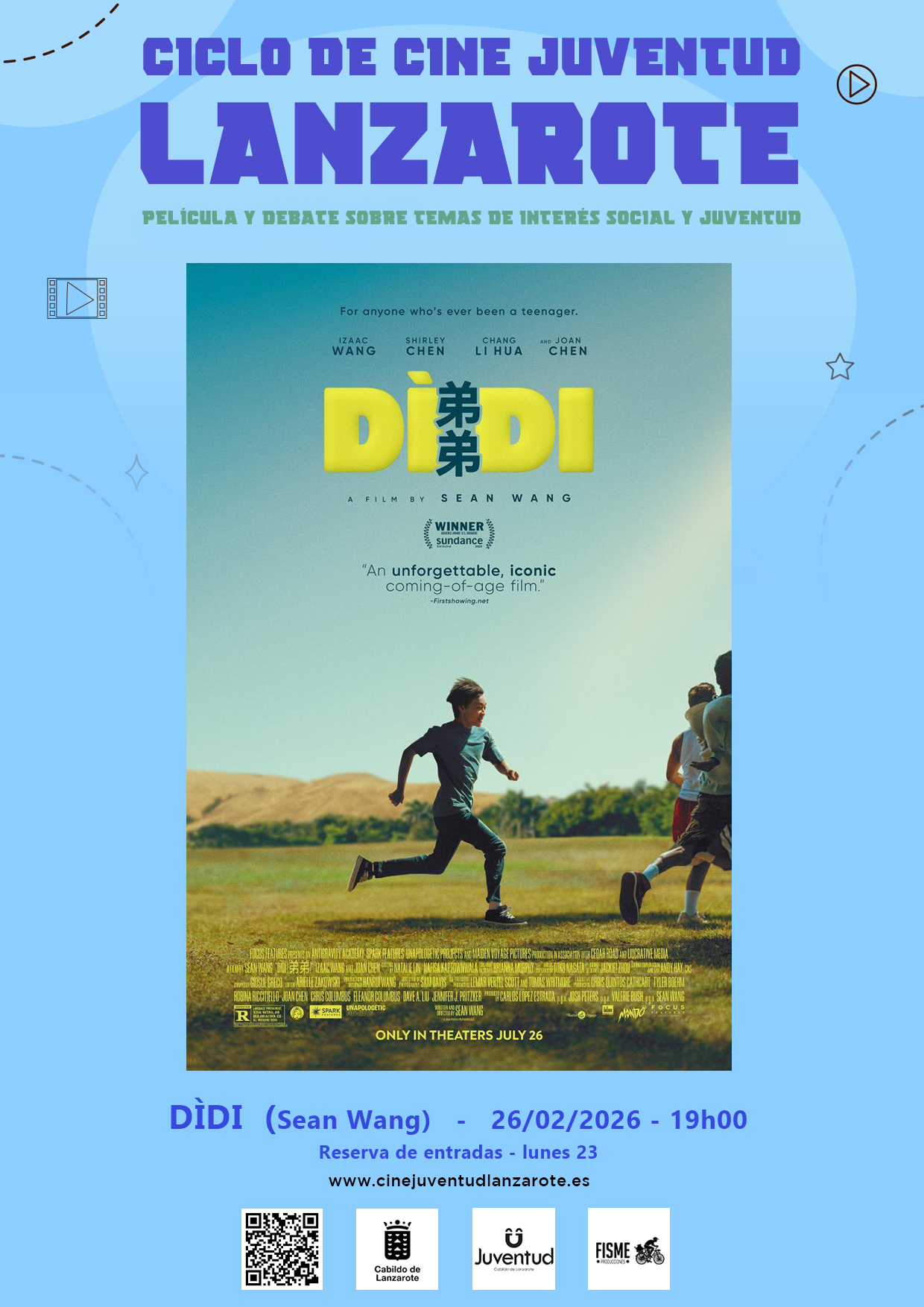 El Cabildo de Lanzarote, a través del Área de Juventud que dirige Aroa Revelo, continúa la programación de 2026 del Ciclo de Cine Juventud Lanzarote con la proyección de la película Dìdi, dirigida por Sean Wang.