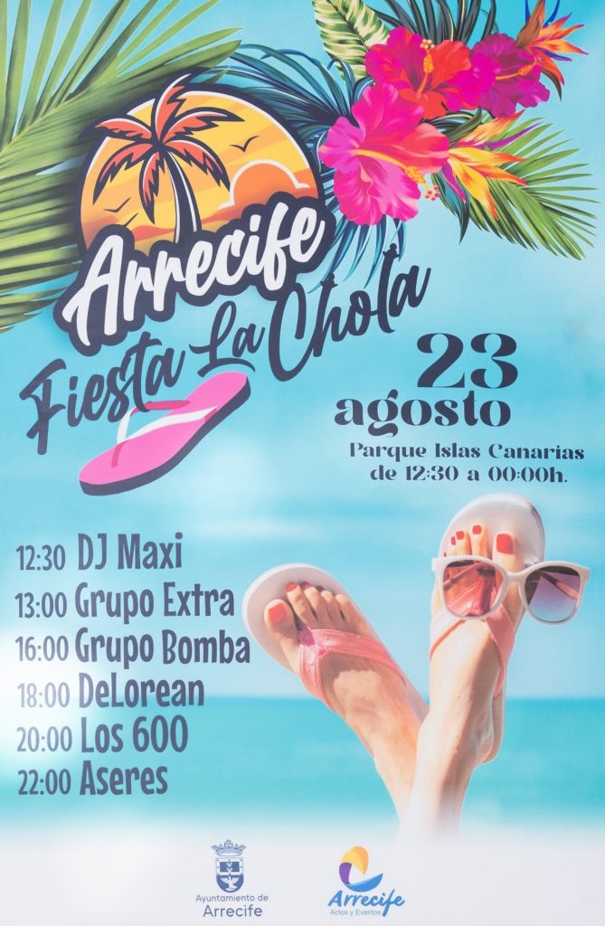 Por su parte, el concejal de Actos y Eventos, Óscar López, ha remarcado que la fiesta de La Chola aporta un encuentro familiar, veraniego y divertido en la programación de las fiestas. Los horarios y grupos que actúan se han planificado para que toda la familia, los chinijos y adultos, puedan asistir y divertirse durante las casi 12 horas de actuaciones. El Ayuntamiento, consciente del descanso de los vecinos de la zona, ha programado que las actuaciones en la Fiesta de la Chola finalicen a las doce de la noche.