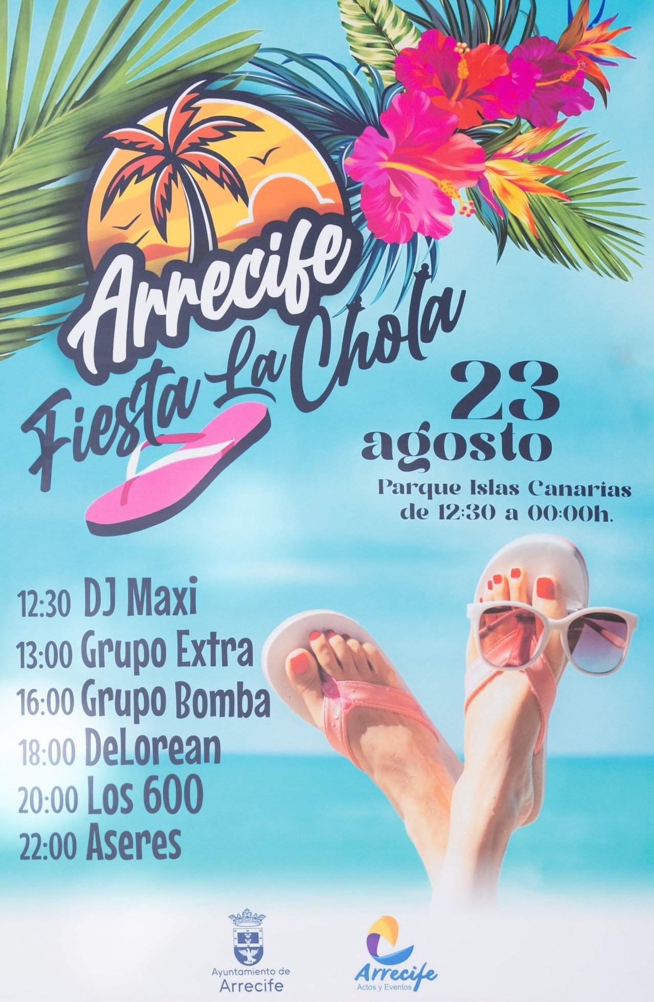Por su parte, el concejal de Actos y Eventos, Óscar López, ha remarcado que la fiesta de La Chola aporta un encuentro familiar, veraniego y divertido en la programación de las fiestas. Los horarios y grupos que actúan se han planificado para que toda la familia, los chinijos y adultos, puedan asistir y divertirse durante las casi 12 horas de actuaciones. El Ayuntamiento, consciente del descanso de los vecinos de la zona, ha programado que las actuaciones en la Fiesta de la Chola finalicen a las doce de la noche.
