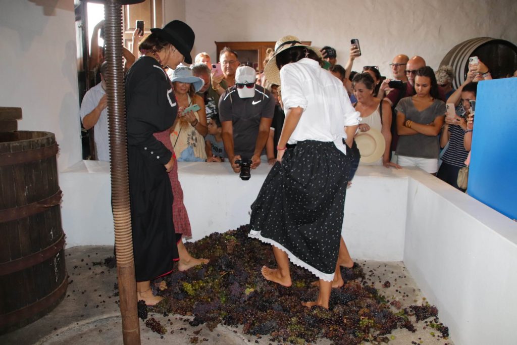 Hasta tres veces se repitió esta rutina y hasta tres veces fue interpretado el pesaje de la cosecha en la vieja báscula de contrapeso que conserva la bodega y su antiquísimo lagar donde chicos y grandes ayudaron a pisar la uva. Para Óscar Noda, alcalde de Yaiza, “mantener la tradición significa recordar a la población más joven la dureza que supuso la reconstrucción del paisaje de La Geria, por parte de mujeres y hombres con la ayuda del camello después de las erupciones volcánicas, y la fertilidad eterna de una extensión de terreno que maravilla al mundo”.
