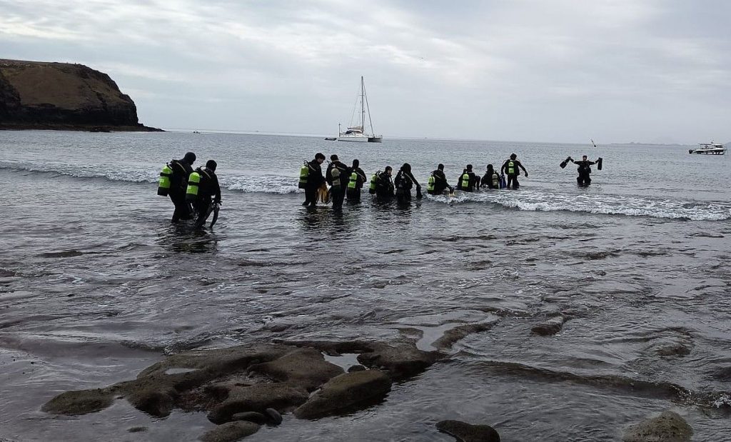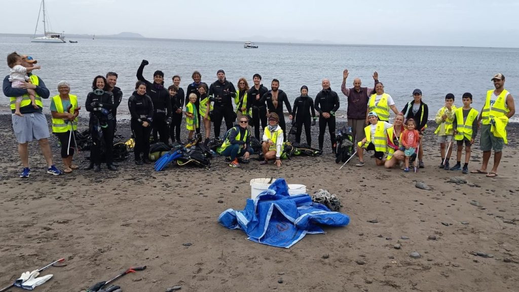 Cuarenta y cinco voluntarios en tierra y mar liberan de basura este paraje del litoral sureño. Yaiza y Pura Vida Diving completan ocho años de acciones periódicas en playas y fondos marinos