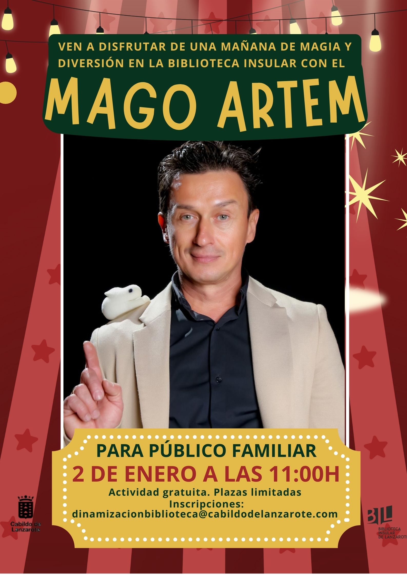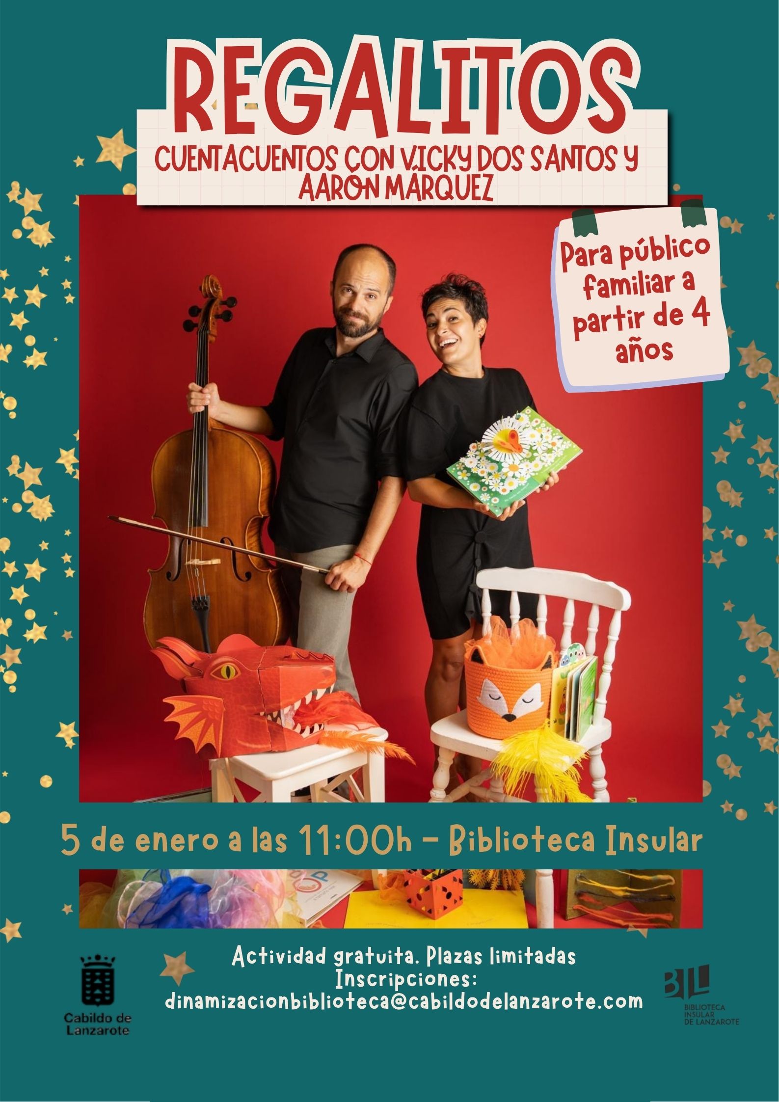 Todas las actividades son gratuitas, aunque con plazas limitadas, por lo que es imprescindible realizar la inscripción previa enviando un correo electrónico a: dinamizacionbiblioteca@cabildodelanzarote.com .