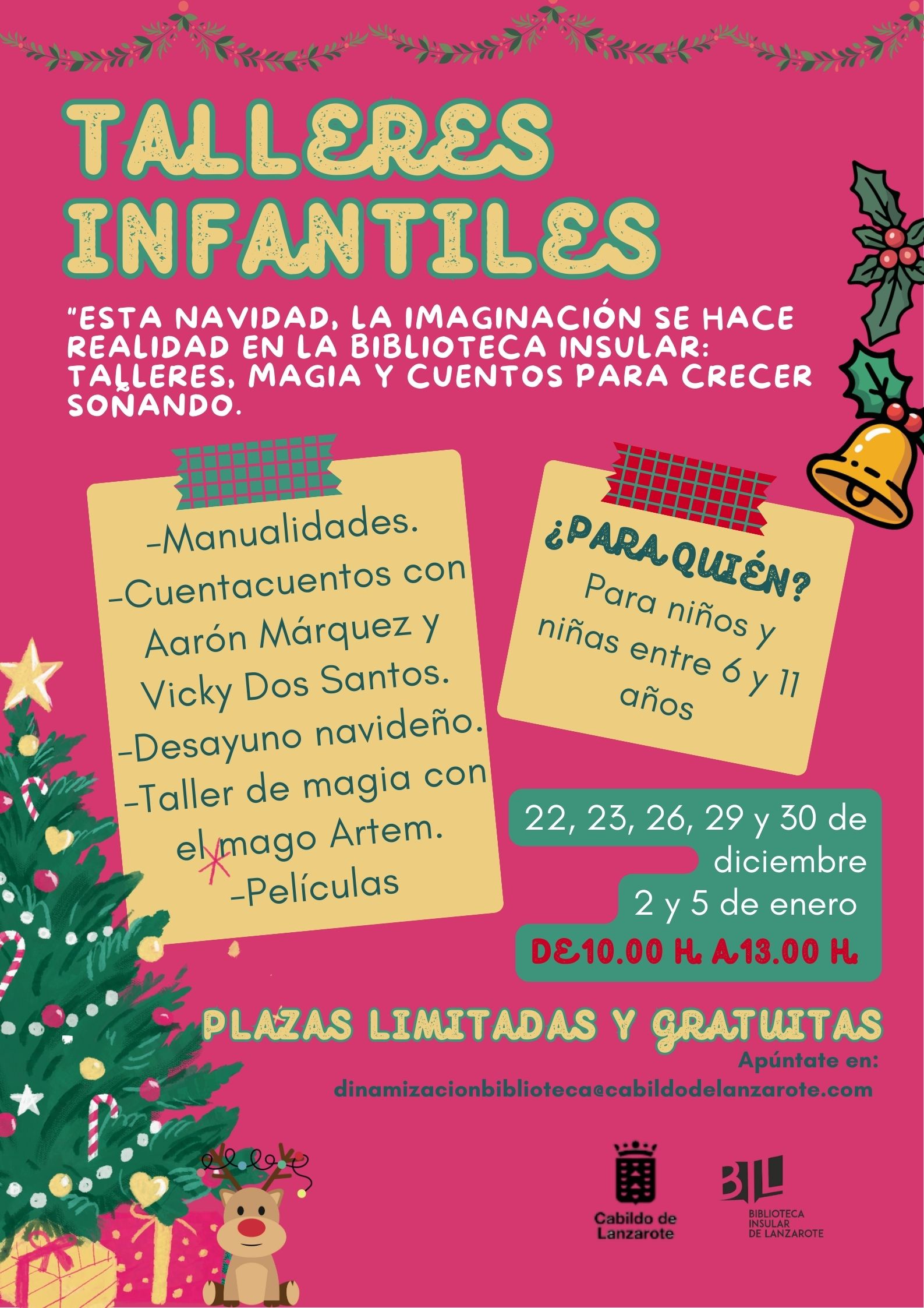 alsolajero /La Biblioteca Insular de Lanzarote presenta su programación navideña bajo el lema ‘Esta Navidad, la imaginación se hace realidad’, invitando al público infantil y familiar a disfrutar de actividades que fomentan la cultura y la creatividad.