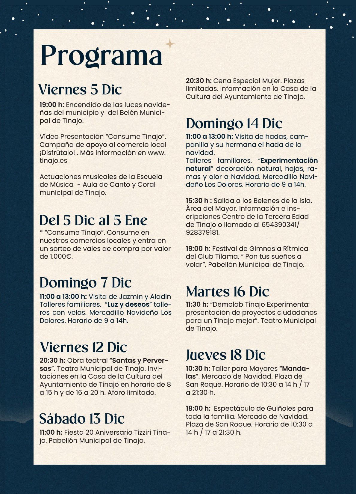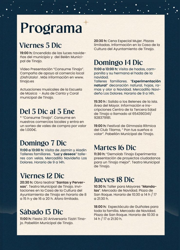El Ayuntamiento de Tinajo ha hecho público el esperado programa de Navidad que comprende