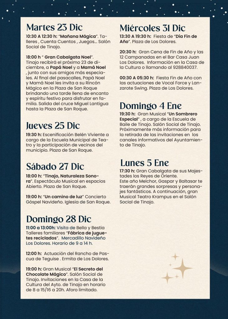 2025 de Tinajo con muchas actividades organizadas para toda la familia en estas fechas tan