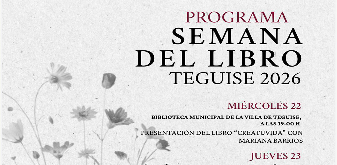El Ayuntamiento de Teguise, a través del Área de Bibliotecas, celebrará del 22 al 25 de abril una nueva edición de la Semana del Libro con una programación pensada para fomentar la lectura, la creatividad y el encuentro entre autores, lectores y familias.
