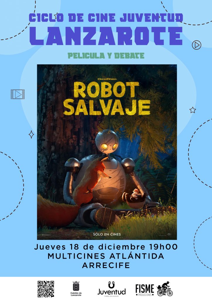 El Cabildo de Lanzarote, a través del Área de Juventud, que dirige Aroa Revelo, continúa en el mes de diciembre con la programación del Ciclo de Cine Juventud Lanzarote con la proyección de la película de animación Robot salvaje, dirigida por Chris Sanders y estrenada en 2024.