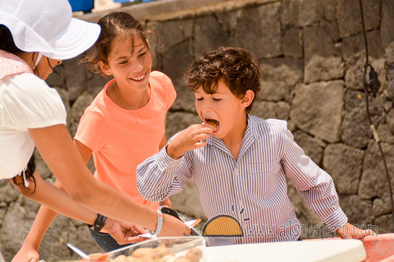 Se instalaron varios puestos artesanía donde los visitantes pudieron conocer de manera más cercana el buen trabajo en lava, cuero, cerámica o madera,o adquirir e dulces y mermeladas artesanales mientras en la zona de la marea, en El Poril, los chinijos de La Tiñosa hacían una exhibición de sus dotes de navegación sobre jolateros.