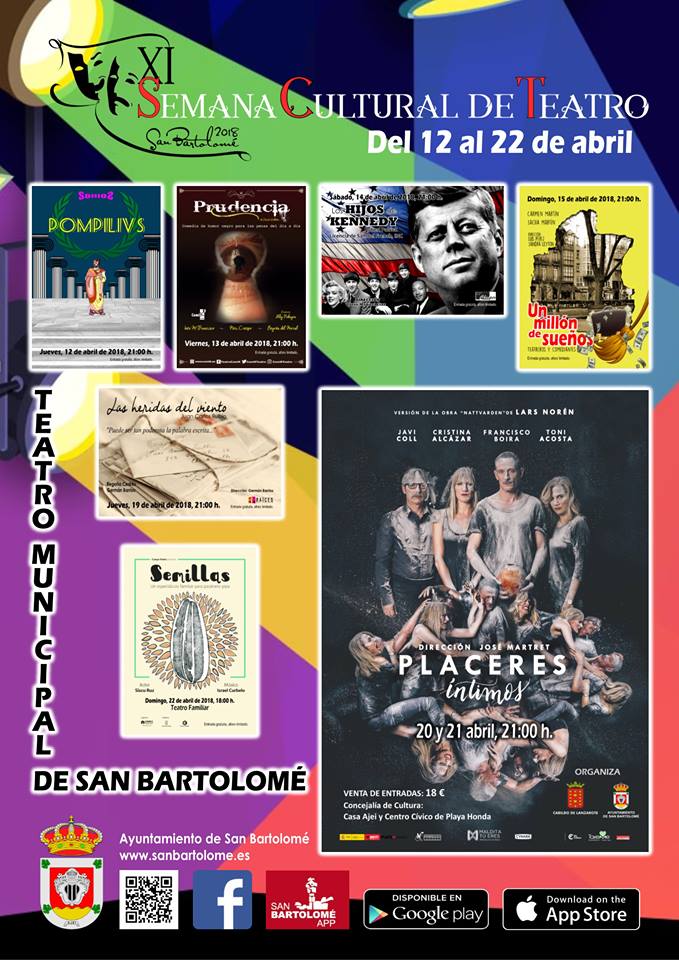 El Municipio de San Bartolomé celebra un nuevo año la «Semana Cultural del Teatro» y para ello en su XI edición tiene preparada una amplia programación de obras teatrales.
