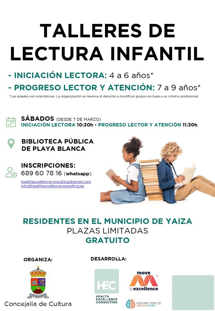 La literatura y el fomento al hábito de leer siguen siendo una de las prioridades del Área de Cultura dirigida por César Rijo. Marzo acoge a partir del 7 de marzo un nuevo taller de lectura infantil que se realizará los sábados en la Biblioteca de Playa Blanca. La iniciativa se plantea como una intervención de apoyo orientada a acompañar y reforzar las diferentes fases del desarrollo lector infantil, desde la aproximación al lenguaje escrito hasta la consolidación de la comprensión lectora. La inscripción debe gestionarse por whatsApp: 689 60 78 16. Es gratuito y con plazas limitadas.
